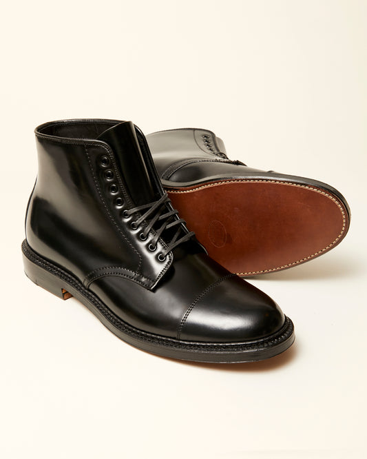 "Soren" Straight Tip Boot in Black Shell Cordovan, Plaza Last