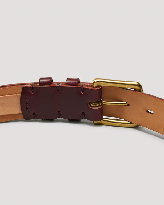 Color 8 Burgundy Chromexcel Leather Belt - Brass - 35mm