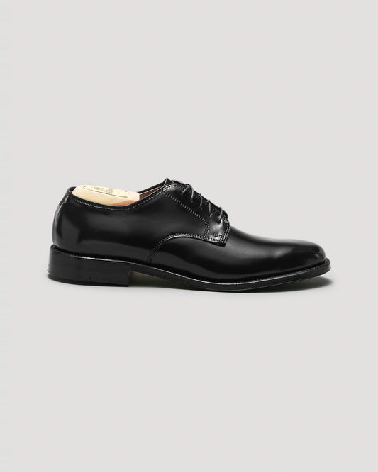 "Victory Heights" Unlined Plain Toe Derby in Black Shell Cordovan, Barrie Last