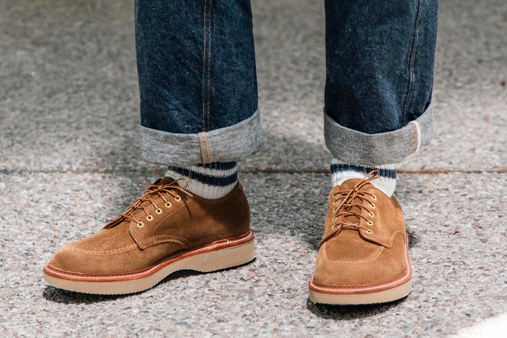 The “Ballard" Indy Shoe is made exclusively for Brick + Mortar. Created for those who seek comfort and designed to be among our most cozy on-feet offerings to date. The Trubalance Last is accommodative to a variety of foot shapes as it features a wider toe box and tapered mid-foot and heel, but low volume to retain sleek appeal. This Last is one of Alden’s original orthopedic models. We combined this Last with a wedge sole and pliable, soft, yet hardwearing snuff suede all upon the Indy Shoe pattern. Fully brought to life, this shoe is a charming choice when you need to prioritize comfort and casual appeal.