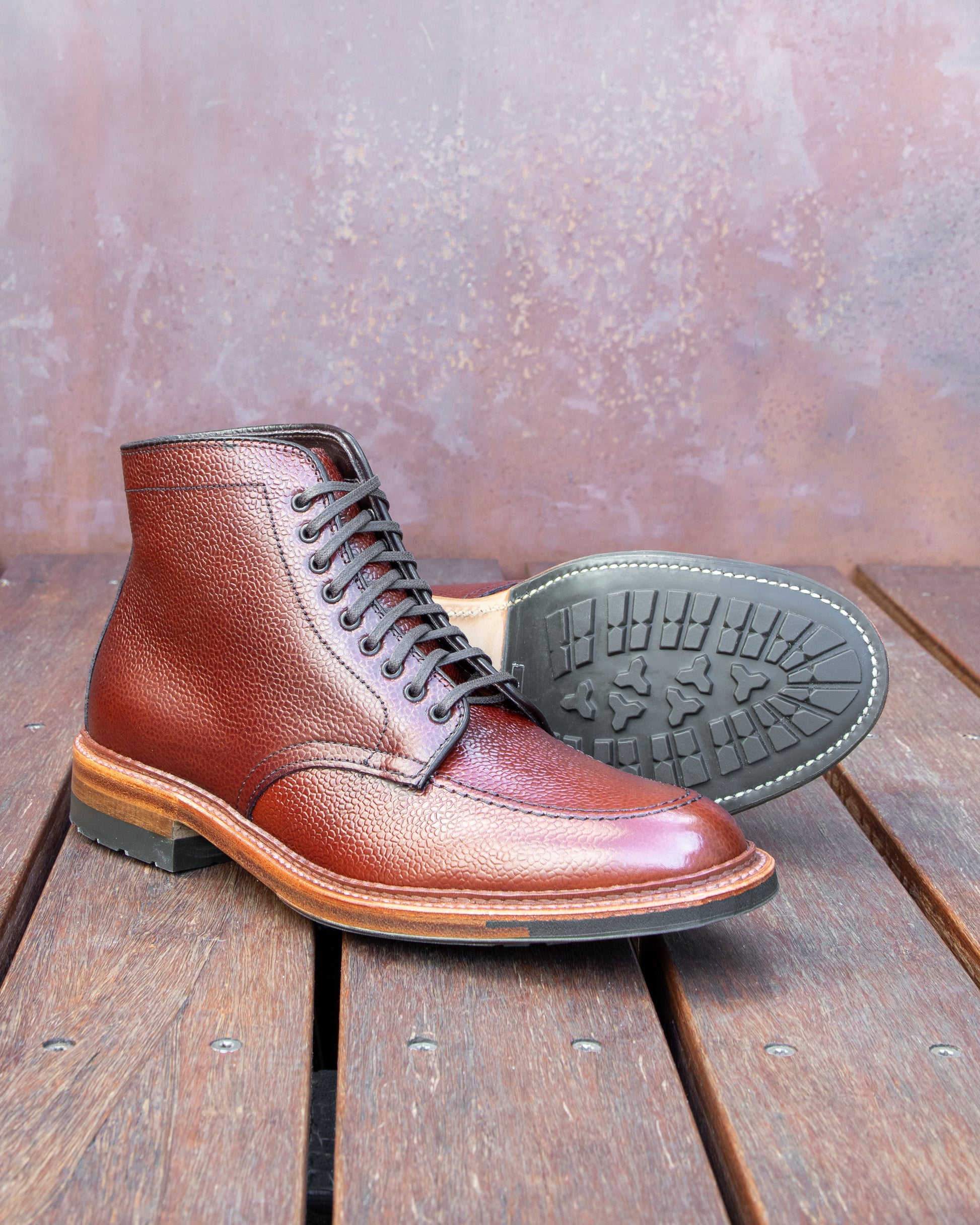 The “Gusto” U-Tip Boot is made exclusively for Brick + Mortar, featuring a rich brown scotch grain calf leather. The versatile brown works with any denim while adding enough tone and texture to keep things interesting for even the most seasoned collector. Crafted on the popular Barrie Last using the a capable commando sole with sleek tonal stitching and brown eyelets.