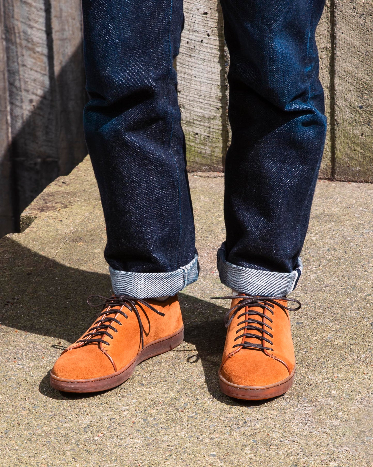 The Harlestone Derby is Crown Northamptonâs original Hand Stitch style and the pinnacle of luxury, handmade sneakers. Following the standards set with bespoke, hand-welted shoes, the Harlestone is cork filled by hand, providing just enough movement to mould to the wearers' feet, with the additional benefits of comfort, stability, and breathable properties throughout the sneaker. Traditional oak bark leather is used for the counter and stiffener with a natural veg-tan crust shoulder used to form the foundations of the insole. Topped with a soft, full natural veg tan leather lining throughout and french bound stitching around the outer edges. The hand stitch finishing is functional as opposed to decorative and the thick, natural waxed cotton double stitch adds construction security and design character. These intricate, centuries-old construction details further close the gap between high-end casual sneakers and traditional, Goodyear Welted Northampton dress shoes.Â