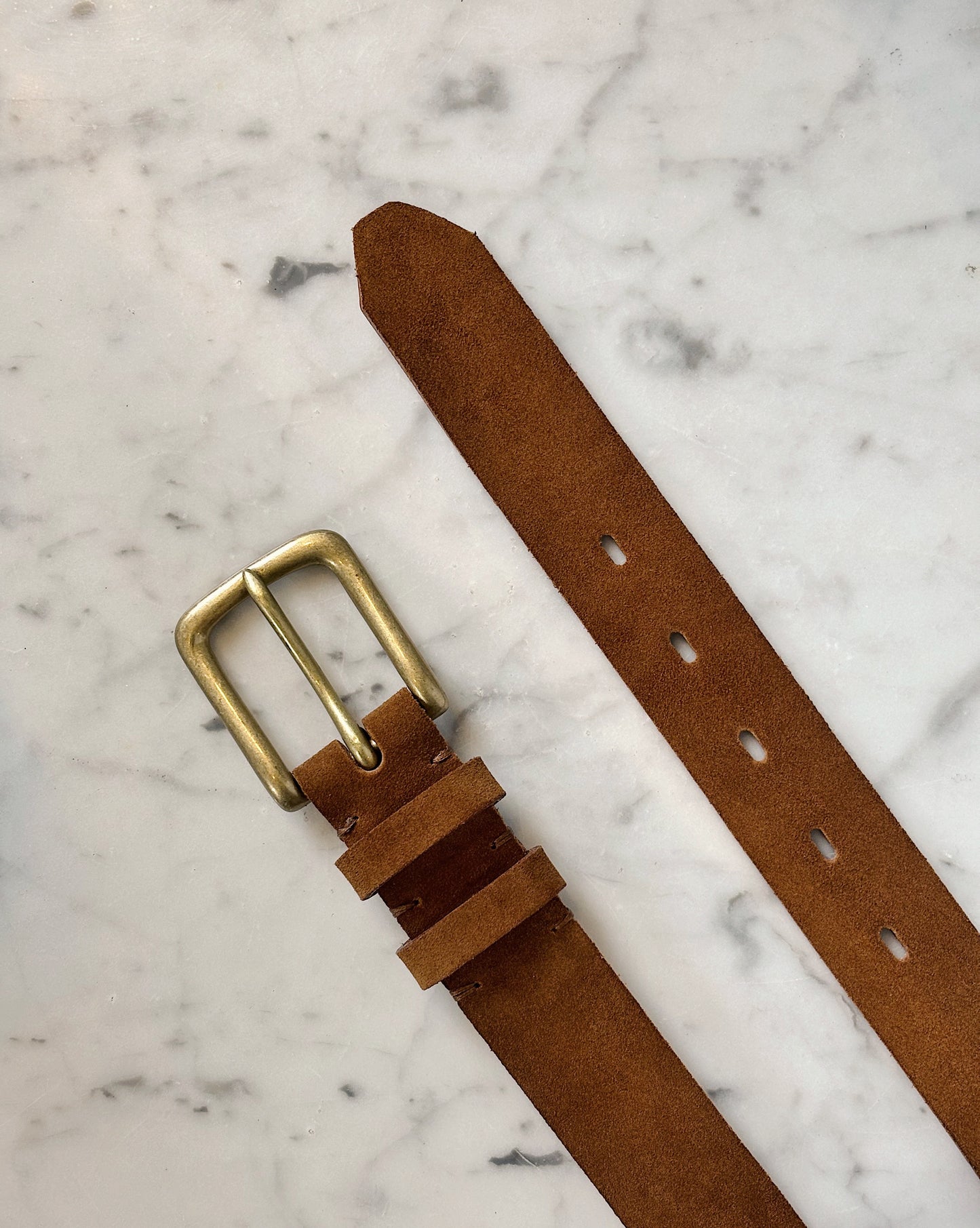 Repello Calf Snuff Suede Leather Belt - Brass - 35mm