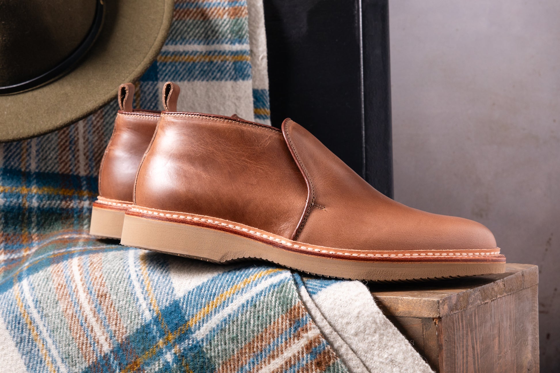 The “Oak Harbor” slip-on chukka boot is made exclusively for Brick + Mortar featuring a natural chromexcel leather. Designed as a sleek, blank canvas which records your daily adventures through rigorous patina over time. This boot is designed for easy going, hardwearing comfort, packed with weather resistant detailing and built to endure whatever style adventure you set out on. The popular Barrie Last provides an accommodative and attractive fit for most feet.