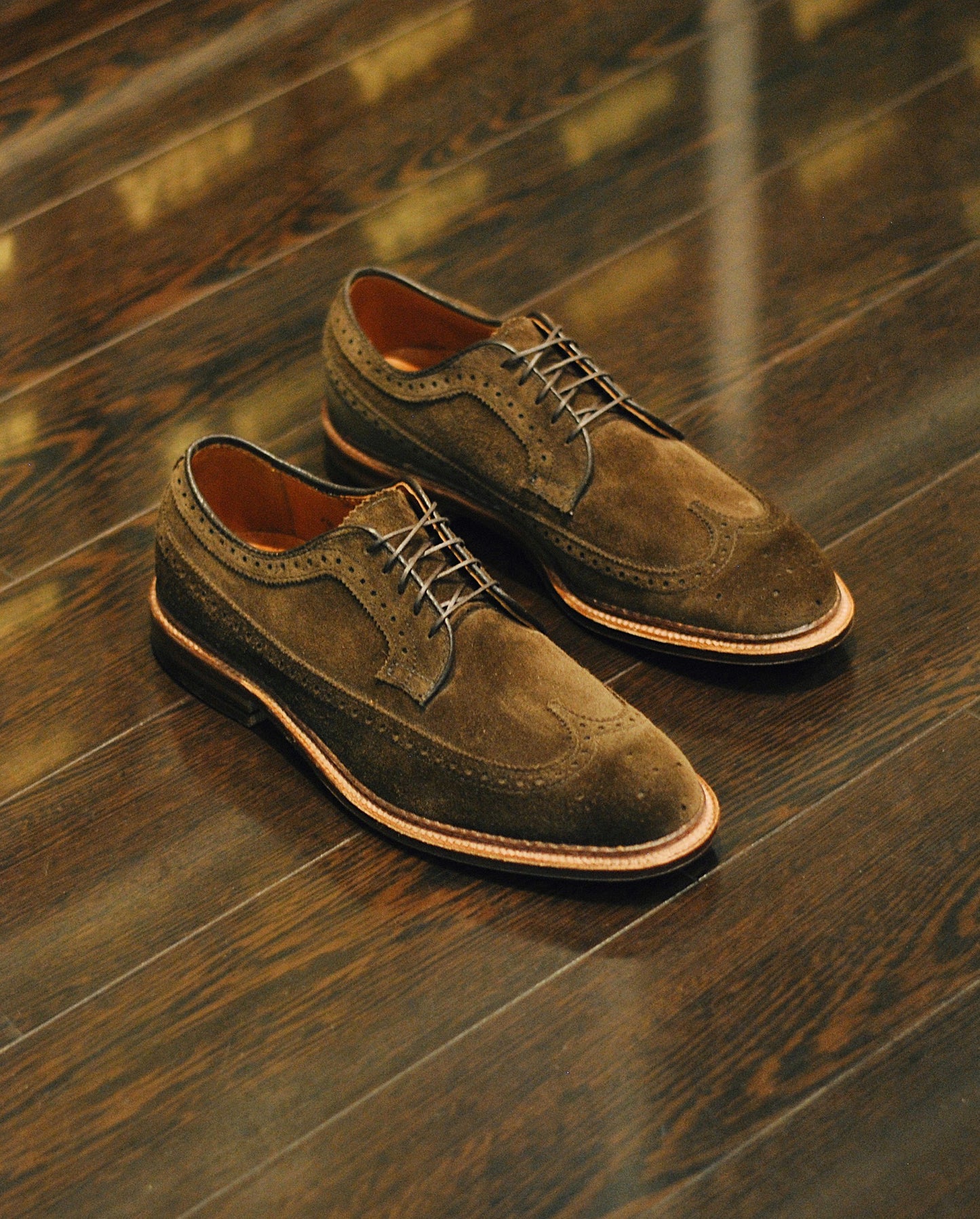 - Long Wing Style with Broguing and Pinking Throughout