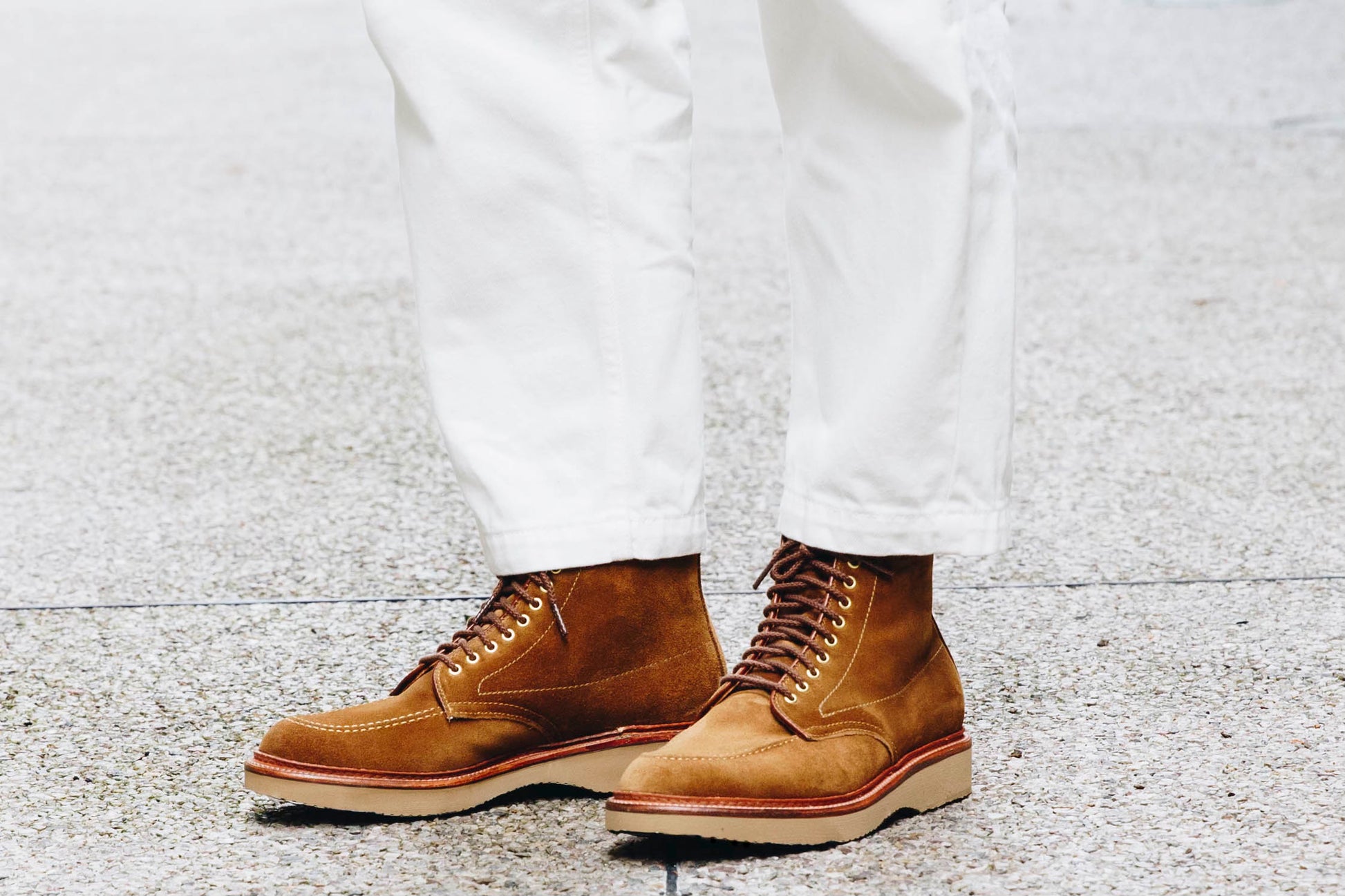 The “Seattle Snuff” Indy Boot is made exclusively for Brick + Mortar and is defined by its remarkable out-of-the-box comfort, craftsmanship and durability. The light brown snuff suede is remarkably soft and since paired with the long lasting Goodyear wedge sole make this exclusive Indy Boot one of our top choices for outstanding all day comfort. We paired this Indy Boot with a golden brown moccasin toe stitch and brass hardware to compliment and coordinate with the Sahara tan wedge outsole. 360 pre-stitched antique reverse welt, a tan wedge sole and Trubalance Last complete this comfortable Indy for all day standing, walking and wearing enjoyment.