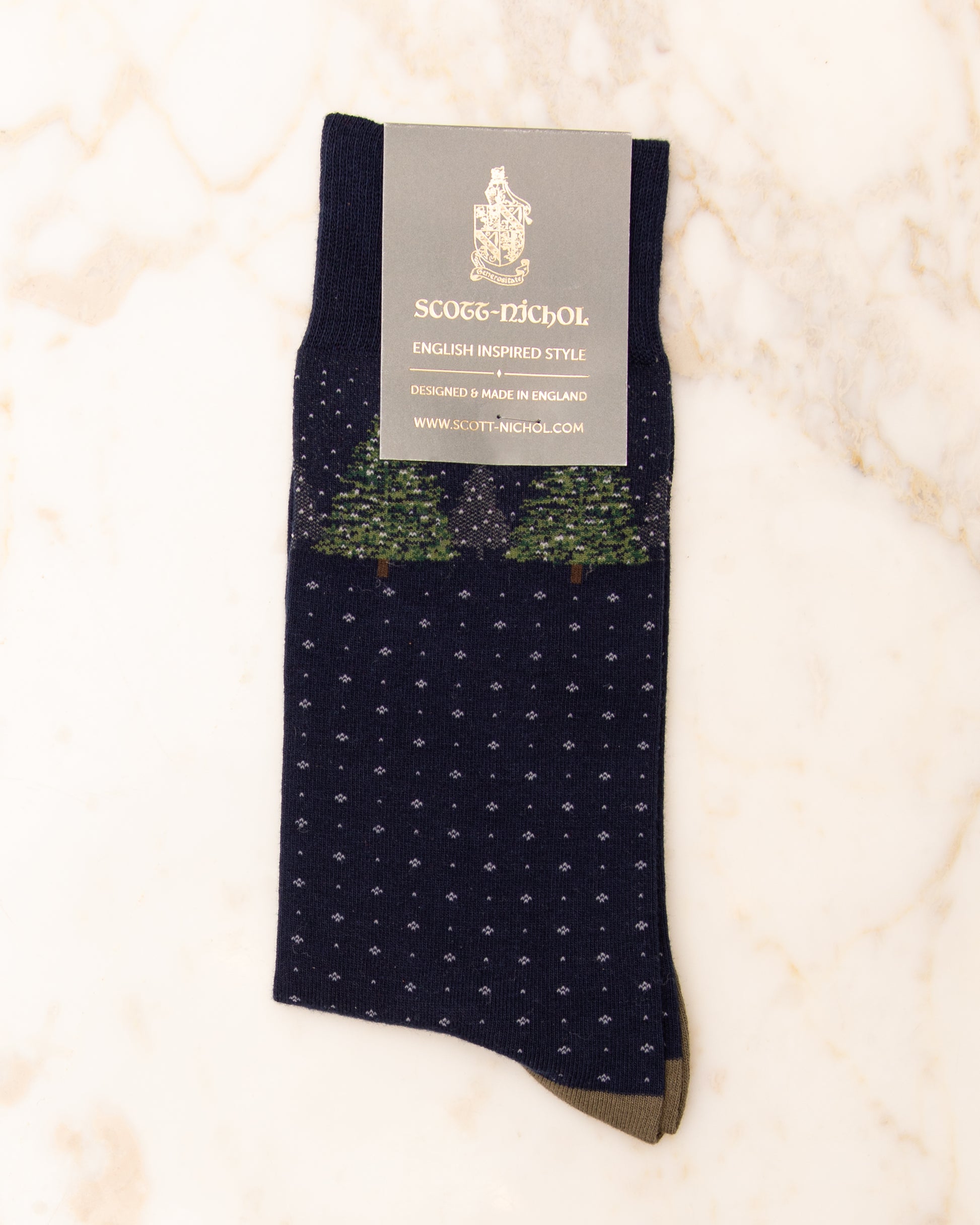 The Winterford is a fine-gauge organic cotton sock with contrast heel and toe. This bold cotton sock will be sure to make you stand out from the crowd, with it’s fun yet stylish colourful design. Providing both comfort and durability. Scott-Nichol Organic Cotton socks are knitted from a blend of super-soft ring spun cotton, with nylon for added durability and a touch of Lycra® for a snug fit.Â